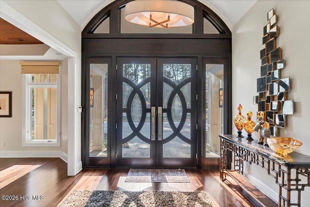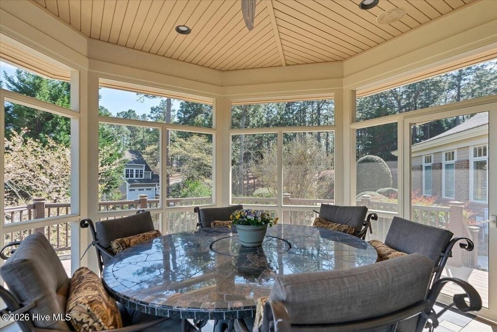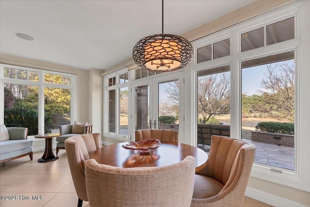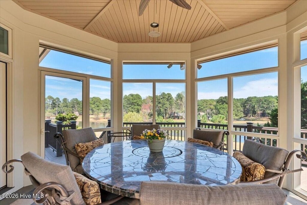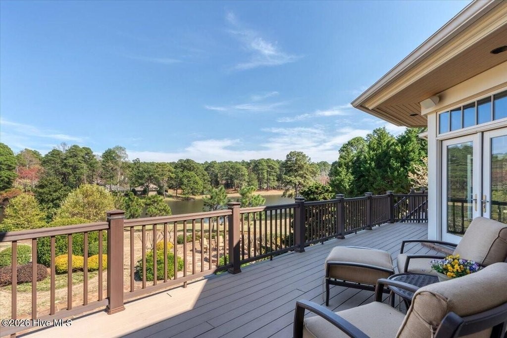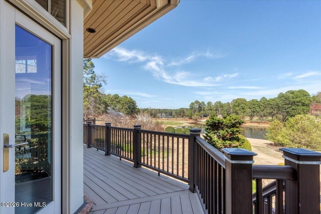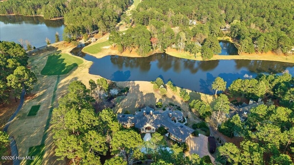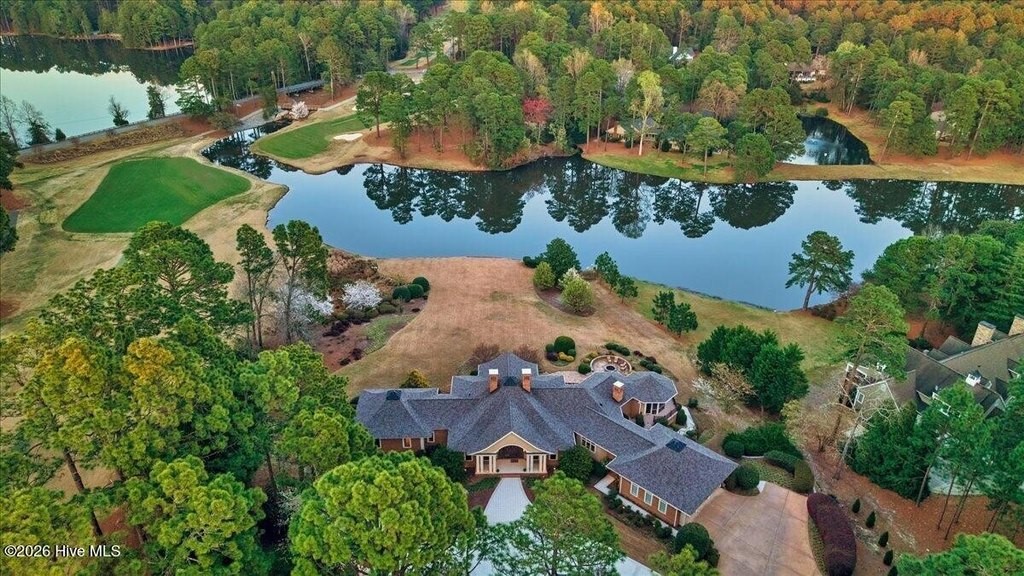 Walls of glass and soaring architectural ceilings frame unobstructed views of Lake Dornoch and CCNC's Dogwood Course, creating a light-filled, private retreat where water and fairway meet in a setting that is simply unmatched. Flawless in its execution and entirely one of a kind, this estate offers a rare lifestyle opportunity defined by craftsmanship, privacy, and prestige within the gates of The Country Club of North Carolina. Located just minutes from the Village of Pinehurst, known as the Home of American Golf, this sprawling residence, set on approximately 3.3 picturesque acres, offers something exceptionally rare: dual frontage on both Lake Dornoch and the 11th hole of the celebrated Dogwood Course. A winding, wooded drive lined with towering pines, azaleas, and dogwoods, creates a sense of arrival that feels both private and grand. The expansive backyard unfolds into sweeping views of the water and manicured fairways, creating a living panorama that shifts beautifully with every season. From nearly every room, the scenery reinforces that this is not simply a home, but a true sanctuary. Interior spaces were professionally designed by Brown Design Group of Boca Raton, resulting in a cohesive, elevated aesthetic where every detail has been thoughtfully curated. Custom cabinetry, architectural elements, and refined finishes carry throughout, ensuring the home feels entirely bespoke and intentional. Designed for both grand entertaining and effortless everyday living, the main level is anchored by a dramatic vaulted great room with fireplace & expansive windows that capture panoramic lake and golf course views. The kitchen serves as the heart of the home, featuring premium appliances and extensive custom cabinetry, seamlessly connecting to both casual and formal dining spaces. A light filled family room, complete with a gas fireplace and custom built-ins, flanks the kitchen and creates a warm, inviting gathering space. A dedicated bar and club room add warmth and sophistication, while dual offices provide flexibility for modern living. The primary suite offers a true retreat, complete with generous walk-in closets, a spa like bath, a private television room built with QuietRock soundproofing, and its own balcony overlooking the lake and fairway. A custom elevator, main level laundry, and multiple outdoor living spaces including a screened porch, wraparound deck, and private balcony, enhance both comfort and convenience. A three car garage complete with storage room and HVAC controlled half bath completes the indoor outdoor living experience. The lower level functions as a private extension of the home, ideal for hosting and recreation. A spacious living area opens directly to the backyard and lakefront, complemented by a media room, secondary kitchen, and temperature controlled wine cellar. Three additional ensuite bedrooms, a craft/hobby room, lower level laundry, and extensive built-ins provide comfort and functionality for families, guests, and extended stays. One guest suite has been thoughtfully designed with accessibility in mind, featuring close proximity to the elevator, wider entryways, and a generously sized walk-in shower with an expanded glass opening. Outdoors, the property is equally compelling, featuring a natural flagstone patio, gas fire pit, and beautifully landscaped grounds enhanced by newly installed landscape lighting (2025), illuminating the entire property well after sunset. A new roof (2024) provides peace of mind, while the home's impeccable condition reflects the care of discerning ownership throughout. Just a short walk from the club's pool, driving range, & tennis courts, this home is perfectly positioned to enjoy the very best of Pinehurst living. The Dogwood Course, one of two championship courses at CCNC, is consistently ranked among NC's top golf courses, maintaining a top five position in the North Carolina Golf Panel's 2025 ranking. Welcome home. *CCNC membership req
