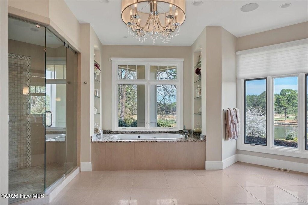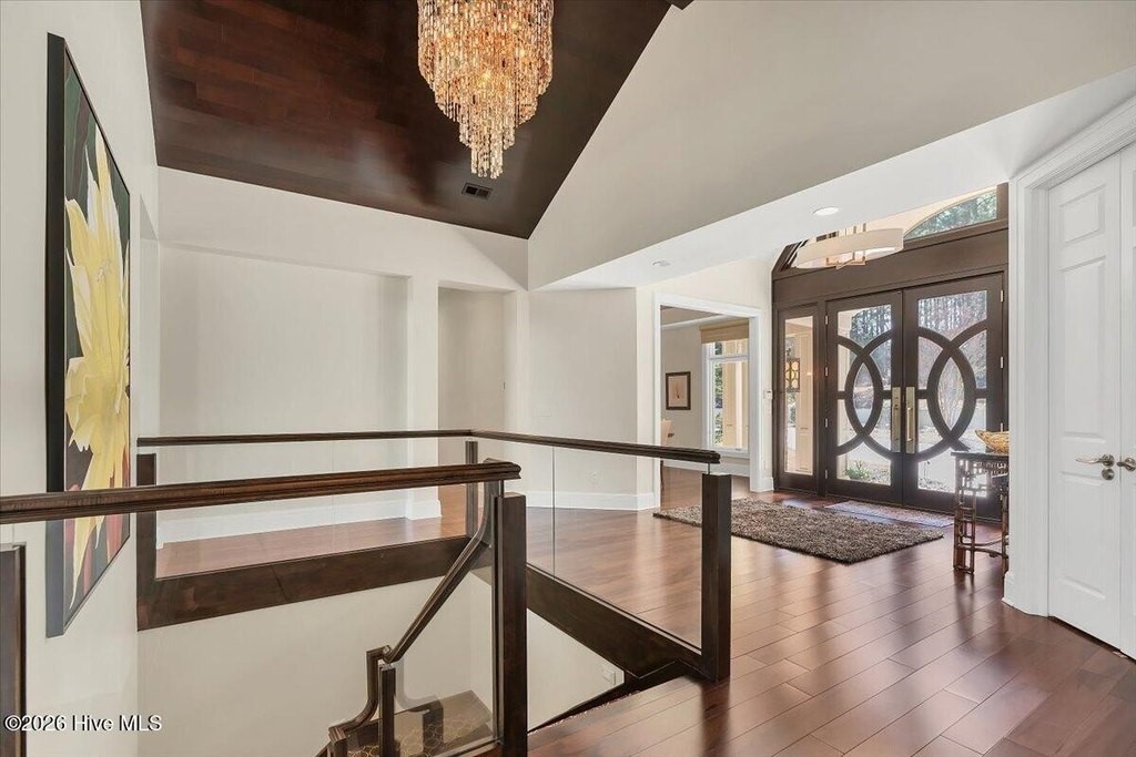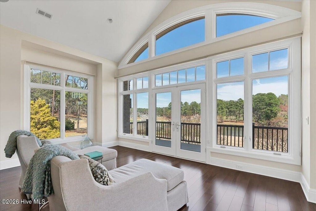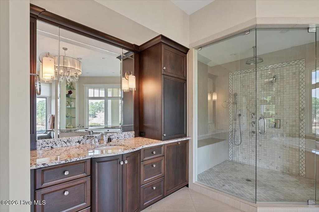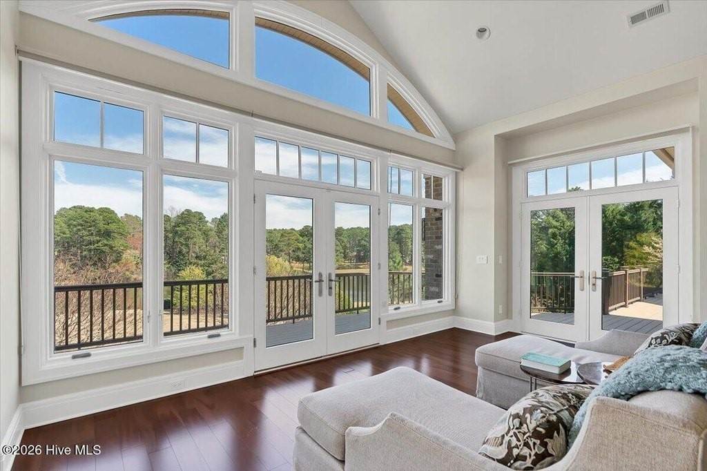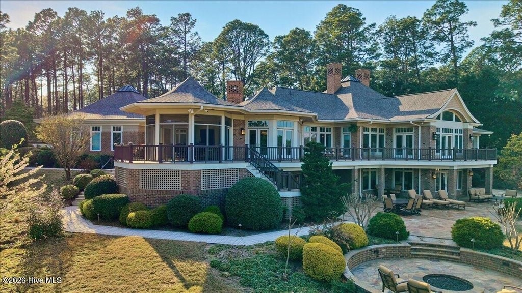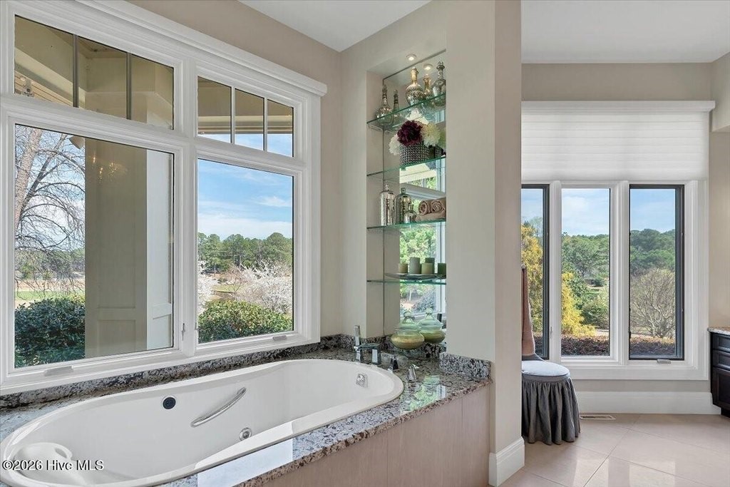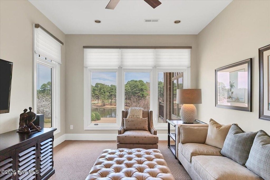 Walls of glass and soaring architectural ceilings frame unobstructed views of Lake Dornoch and CCNC's Dogwood Course, creating a light-filled, private retreat where water and fairway meet in a setting that is simply unmatched. Flawless in its execution and entirely one of a kind, this estate offers a rare lifestyle opportunity defined by craftsmanship, privacy, and prestige within the gates of The Country Club of North Carolina. Located just minutes from the Village of Pinehurst, known as the Home of American Golf, this sprawling residence, set on approximately 3.3 picturesque acres, offers something exceptionally rare: dual frontage on both Lake Dornoch and the 11th hole of the celebrated Dogwood Course. A winding, wooded drive lined with towering pines, azaleas, and dogwoods, creates a sense of arrival that feels both private and grand. The expansive backyard unfolds into sweeping views of the water and manicured fairways, creating a living panorama that shifts beautifully with every season. From nearly every room, the scenery reinforces that this is not simply a home, but a true sanctuary. Interior spaces were professionally designed by Brown Design Group of Boca Raton, resulting in a cohesive, elevated aesthetic where every detail has been thoughtfully curated. Custom cabinetry, architectural elements, and refined finishes carry throughout, ensuring the home feels entirely bespoke and intentional. Designed for both grand entertaining and effortless everyday living, the main level is anchored by a dramatic vaulted great room with fireplace & expansive windows that capture panoramic lake and golf course views. The kitchen serves as the heart of the home, featuring premium appliances and extensive custom cabinetry, seamlessly connecting to both casual and formal dining spaces. A light filled family room, complete with a gas fireplace and custom built-ins, flanks the kitchen and creates a warm, inviting gathering space. A dedicated bar and club room add warmth and sophistication, while dual offices provide flexibility for modern living. The primary suite offers a true retreat, complete with generous walk-in closets, a spa like bath, a private television room built with QuietRock soundproofing, and its own balcony overlooking the lake and fairway. A custom elevator, main level laundry, and multiple outdoor living spaces including a screened porch, wraparound deck, and private balcony, enhance both comfort and convenience. A three car garage complete with storage room and HVAC controlled half bath completes the indoor outdoor living experience. The lower level functions as a private extension of the home, ideal for hosting and recreation. A spacious living area opens directly to the backyard and lakefront, complemented by a media room, secondary kitchen, and temperature controlled wine cellar. Three additional ensuite bedrooms, a craft/hobby room, lower level laundry, and extensive built-ins provide comfort and functionality for families, guests, and extended stays. One guest suite has been thoughtfully designed with accessibility in mind, featuring close proximity to the elevator, wider entryways, and a generously sized walk-in shower with an expanded glass opening. Outdoors, the property is equally compelling, featuring a natural flagstone patio, gas fire pit, and beautifully landscaped grounds enhanced by newly installed landscape lighting (2025), illuminating the entire property well after sunset. A new roof (2024) provides peace of mind, while the home's impeccable condition reflects the care of discerning ownership throughout. Just a short walk from the club's pool, driving range, & tennis courts, this home is perfectly positioned to enjoy the very best of Pinehurst living. The Dogwood Course, one of two championship courses at CCNC, is consistently ranked among NC's top golf courses, maintaining a top five position in the North Carolina Golf Panel's 2025 ranking. Welcome home. *CCNC membership req