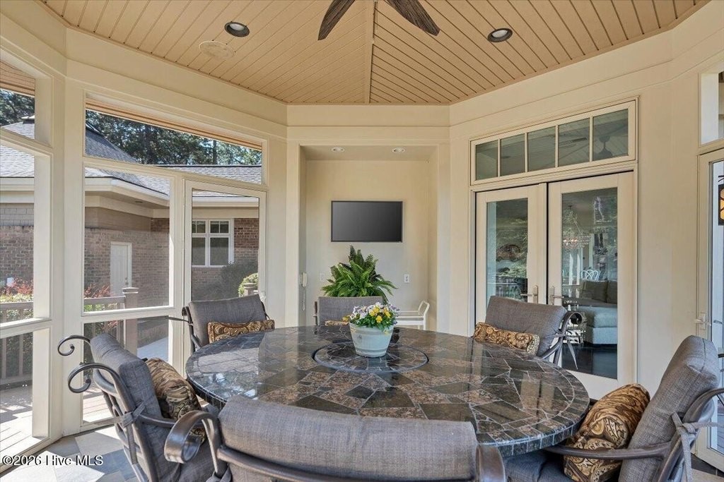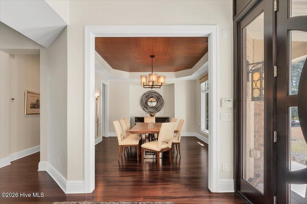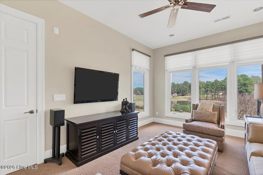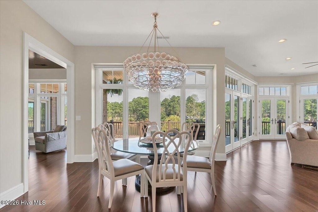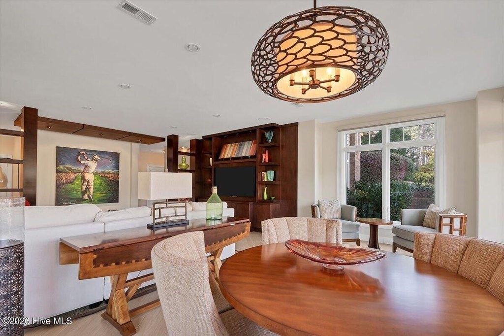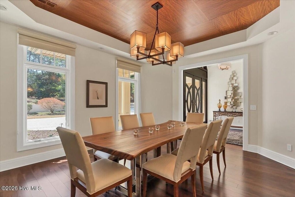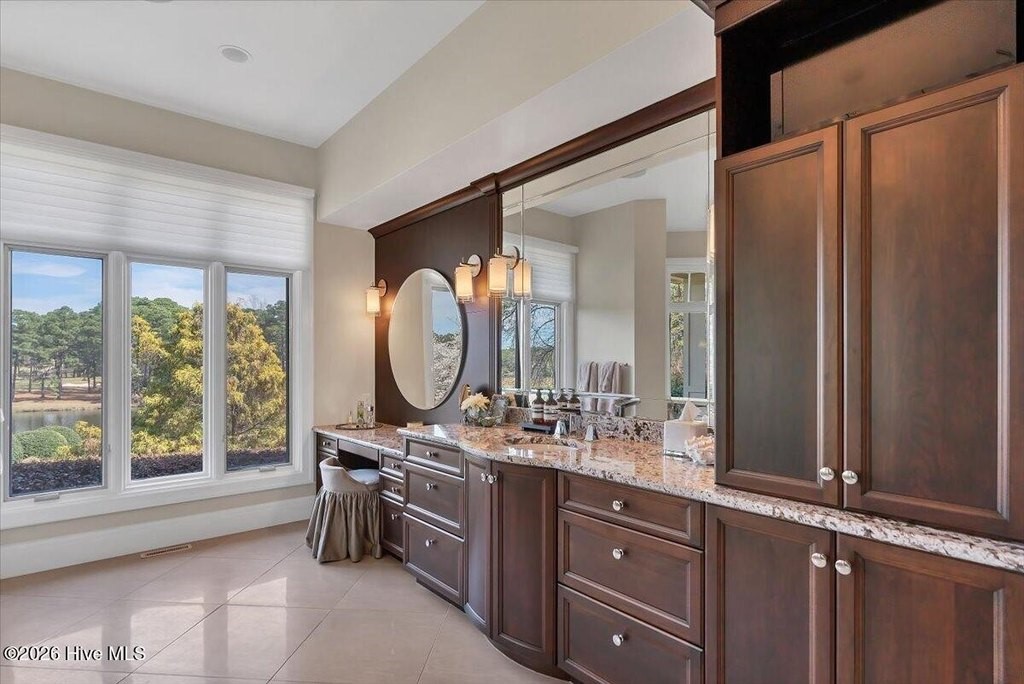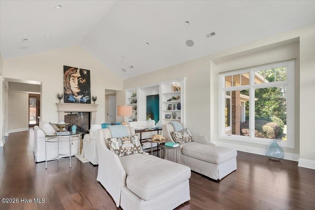 Walls of glass and soaring architectural ceilings frame unobstructed views of Lake Dornoch and CCNC's Dogwood Course, creating a light-filled, private retreat where water and fairway meet in a setting that is simply unmatched. Flawless in its execution and entirely one of a kind, this estate offers a rare lifestyle opportunity defined by craftsmanship, privacy, and prestige within the gates of The Country Club of North Carolina. Located just minutes from the Village of Pinehurst, known as the Home of American Golf, this sprawling residence, set on approximately 3.3 picturesque acres, offers something exceptionally rare: dual frontage on both Lake Dornoch and the 11th hole of the celebrated Dogwood Course. A winding, wooded drive lined with towering pines, azaleas, and dogwoods, creates a sense of arrival that feels both private and grand. The expansive backyard unfolds into sweeping views of the water and manicured fairways, creating a living panorama that shifts beautifully with every season. From nearly every room, the scenery reinforces that this is not simply a home, but a true sanctuary. Interior spaces were professionally designed by Brown Design Group of Boca Raton, resulting in a cohesive, elevated aesthetic where every detail has been thoughtfully curated. Custom cabinetry, architectural elements, and refined finishes carry throughout, ensuring the home feels entirely bespoke and intentional. Designed for both grand entertaining and effortless everyday living, the main level is anchored by a dramatic vaulted great room with fireplace & expansive windows that capture panoramic lake and golf course views. The kitchen serves as the heart of the home, featuring premium appliances and extensive custom cabinetry, seamlessly connecting to both casual and formal dining spaces. A light filled family room, complete with a gas fireplace and custom built-ins, flanks the kitchen and creates a warm, inviting gathering space. A dedicated bar and club room add warmth and sophistication, while dual offices provide flexibility for modern living. The primary suite offers a true retreat, complete with generous walk-in closets, a spa like bath, a private television room built with QuietRock soundproofing, and its own balcony overlooking the lake and fairway. A custom elevator, main level laundry, and multiple outdoor living spaces including a screened porch, wraparound deck, and private balcony, enhance both comfort and convenience. A three car garage complete with storage room and HVAC controlled half bath completes the indoor outdoor living experience. The lower level functions as a private extension of the home, ideal for hosting and recreation. A spacious living area opens directly to the backyard and lakefront, complemented by a media room, secondary kitchen, and temperature controlled wine cellar. Three additional ensuite bedrooms, a craft/hobby room, lower level laundry, and extensive built-ins provide comfort and functionality for families, guests, and extended stays. One guest suite has been thoughtfully designed with accessibility in mind, featuring close proximity to the elevator, wider entryways, and a generously sized walk-in shower with an expanded glass opening. Outdoors, the property is equally compelling, featuring a natural flagstone patio, gas fire pit, and beautifully landscaped grounds enhanced by newly installed landscape lighting (2025), illuminating the entire property well after sunset. A new roof (2024) provides peace of mind, while the home's impeccable condition reflects the care of discerning ownership throughout. Just a short walk from the club's pool, driving range, & tennis courts, this home is perfectly positioned to enjoy the very best of Pinehurst living. The Dogwood Course, one of two championship courses at CCNC, is consistently ranked among NC's top golf courses, maintaining a top five position in the North Carolina Golf Panel's 2025 ranking. Welcome home. *CCNC membership req