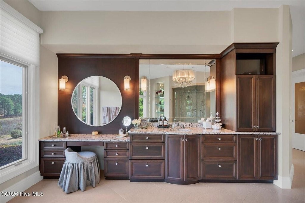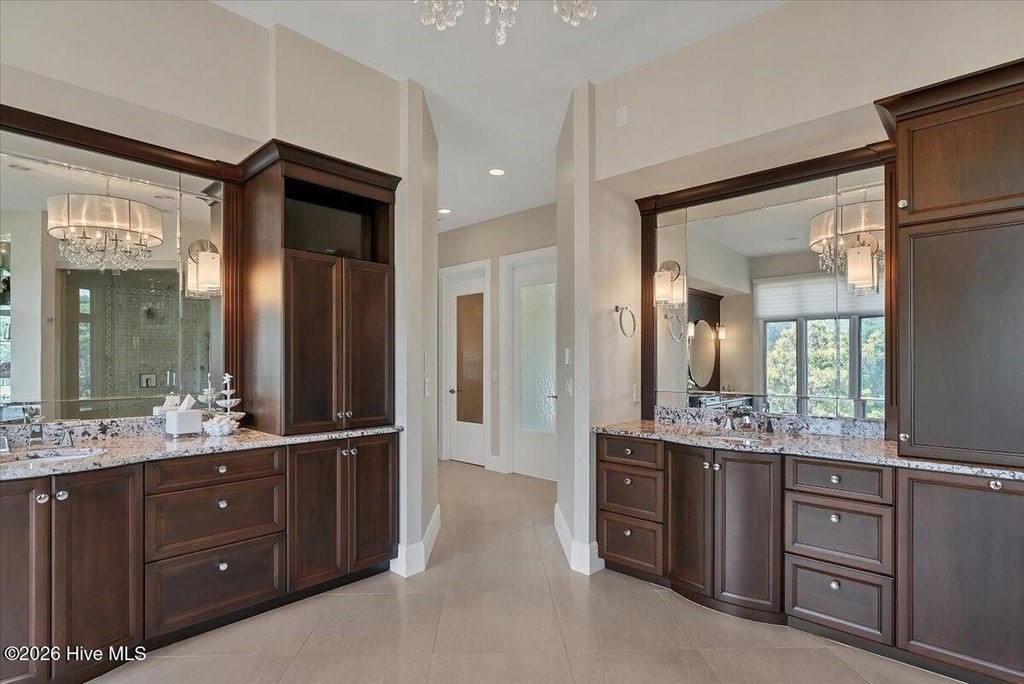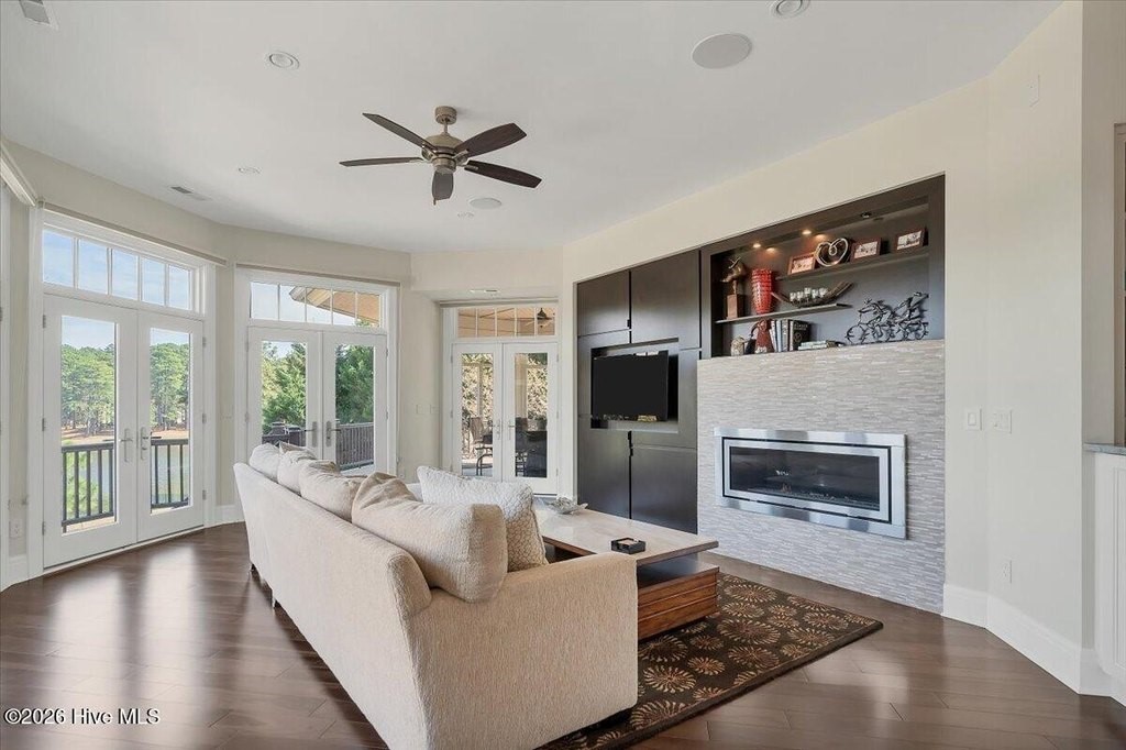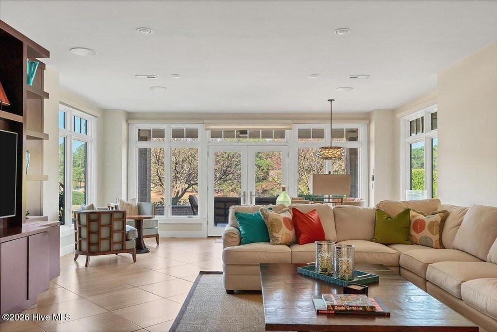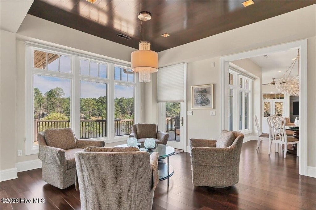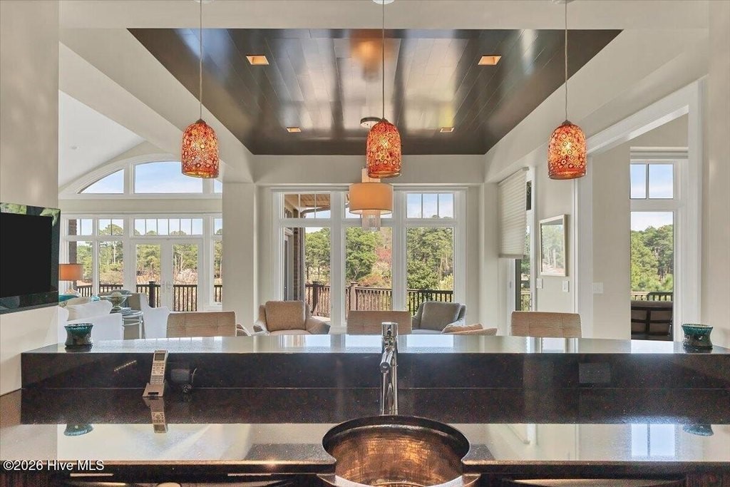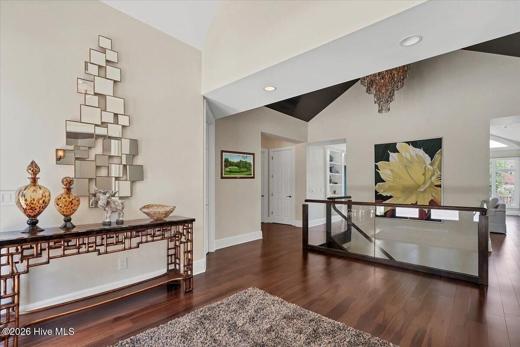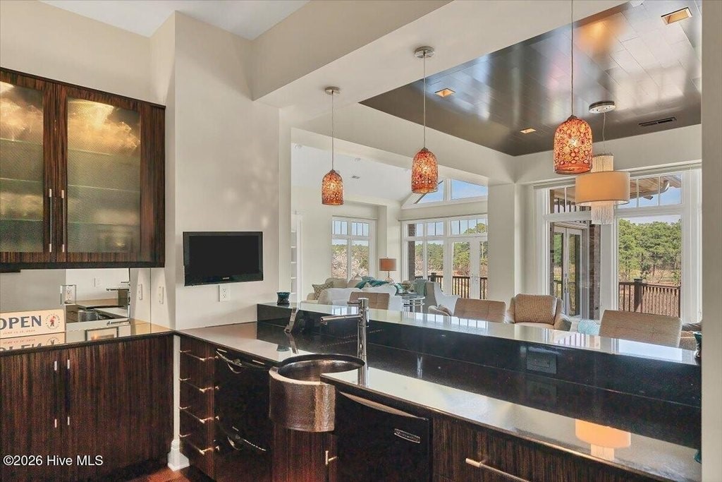 Walls of glass and soaring architectural ceilings frame unobstructed views of Lake Dornoch and CCNC's Dogwood Course, creating a light-filled, private retreat where water and fairway meet in a setting that is simply unmatched. Flawless in its execution and entirely one of a kind, this estate offers a rare lifestyle opportunity defined by craftsmanship, privacy, and prestige within the gates of The Country Club of North Carolina. Located just minutes from the Village of Pinehurst, known as the Home of American Golf, this sprawling residence, set on approximately 3.3 picturesque acres, offers something exceptionally rare: dual frontage on both Lake Dornoch and the 11th hole of the celebrated Dogwood Course. A winding, wooded drive lined with towering pines, azaleas, and dogwoods, creates a sense of arrival that feels both private and grand. The expansive backyard unfolds into sweeping views of the water and manicured fairways, creating a living panorama that shifts beautifully with every season. From nearly every room, the scenery reinforces that this is not simply a home, but a true sanctuary. Interior spaces were professionally designed by Brown Design Group of Boca Raton, resulting in a cohesive, elevated aesthetic where every detail has been thoughtfully curated. Custom cabinetry, architectural elements, and refined finishes carry throughout, ensuring the home feels entirely bespoke and intentional. Designed for both grand entertaining and effortless everyday living, the main level is anchored by a dramatic vaulted great room with fireplace & expansive windows that capture panoramic lake and golf course views. The kitchen serves as the heart of the home, featuring premium appliances and extensive custom cabinetry, seamlessly connecting to both casual and formal dining spaces. A light filled family room, complete with a gas fireplace and custom built-ins, flanks the kitchen and creates a warm, inviting gathering space. A dedicated bar and club room add warmth and sophistication, while dual offices provide flexibility for modern living. The primary suite offers a true retreat, complete with generous walk-in closets, a spa like bath, a private television room built with QuietRock soundproofing, and its own balcony overlooking the lake and fairway. A custom elevator, main level laundry, and multiple outdoor living spaces including a screened porch, wraparound deck, and private balcony, enhance both comfort and convenience. A three car garage complete with storage room and HVAC controlled half bath completes the indoor outdoor living experience. The lower level functions as a private extension of the home, ideal for hosting and recreation. A spacious living area opens directly to the backyard and lakefront, complemented by a media room, secondary kitchen, and temperature controlled wine cellar. Three additional ensuite bedrooms, a craft/hobby room, lower level laundry, and extensive built-ins provide comfort and functionality for families, guests, and extended stays. One guest suite has been thoughtfully designed with accessibility in mind, featuring close proximity to the elevator, wider entryways, and a generously sized walk-in shower with an expanded glass opening. Outdoors, the property is equally compelling, featuring a natural flagstone patio, gas fire pit, and beautifully landscaped grounds enhanced by newly installed landscape lighting (2025), illuminating the entire property well after sunset. A new roof (2024) provides peace of mind, while the home's impeccable condition reflects the care of discerning ownership throughout. Just a short walk from the club's pool, driving range, & tennis courts, this home is perfectly positioned to enjoy the very best of Pinehurst living. The Dogwood Course, one of two championship courses at CCNC, is consistently ranked among NC's top golf courses, maintaining a top five position in the North Carolina Golf Panel's 2025 ranking. Welcome home. *CCNC membership req