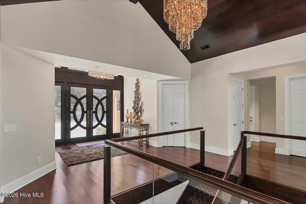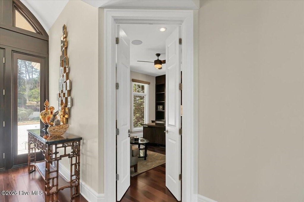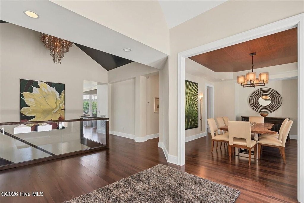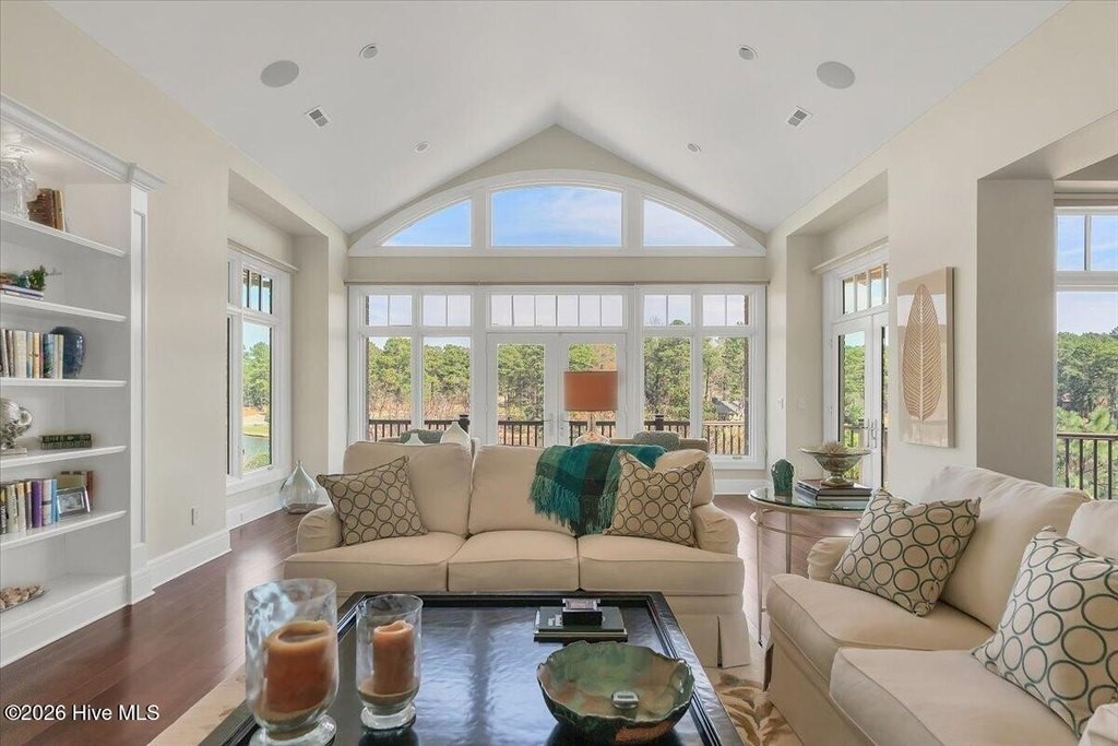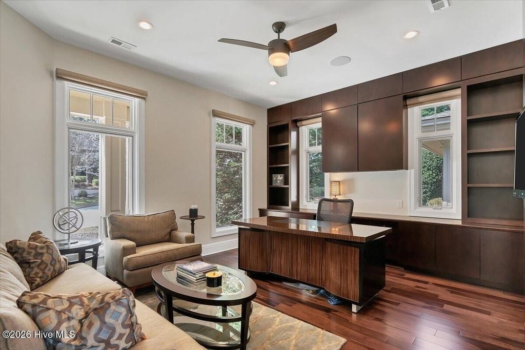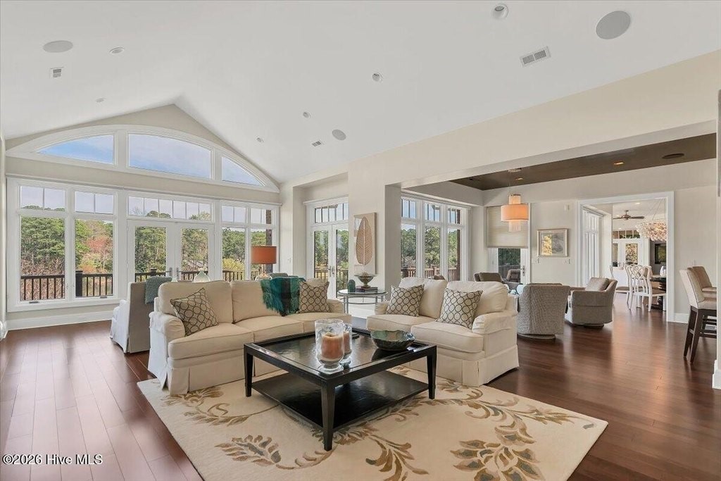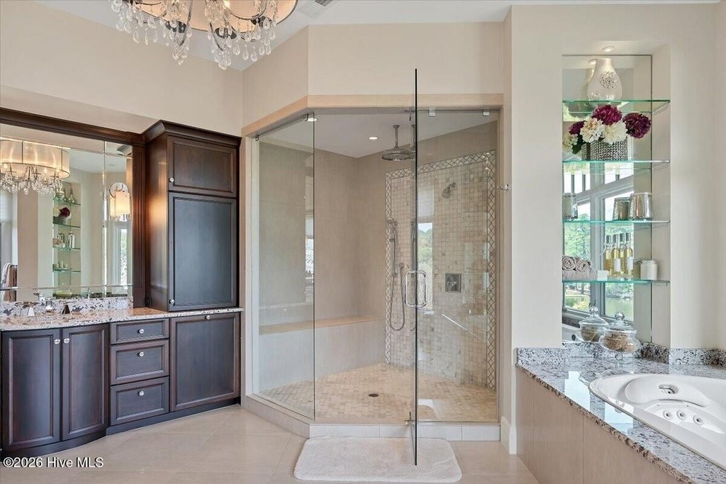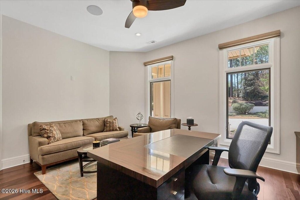 Walls of glass and soaring architectural ceilings frame unobstructed views of Lake Dornoch and CCNC's Dogwood Course, creating a light-filled, private retreat where water and fairway meet in a setting that is simply unmatched. Flawless in its execution and entirely one of a kind, this estate offers a rare lifestyle opportunity defined by craftsmanship, privacy, and prestige within the gates of The Country Club of North Carolina. Located just minutes from the Village of Pinehurst, known as the Home of American Golf, this sprawling residence, set on approximately 3.3 picturesque acres, offers something exceptionally rare: dual frontage on both Lake Dornoch and the 11th hole of the celebrated Dogwood Course. A winding, wooded drive lined with towering pines, azaleas, and dogwoods, creates a sense of arrival that feels both private and grand. The expansive backyard unfolds into sweeping views of the water and manicured fairways, creating a living panorama that shifts beautifully with every season. From nearly every room, the scenery reinforces that this is not simply a home, but a true sanctuary. Interior spaces were professionally designed by Brown Design Group of Boca Raton, resulting in a cohesive, elevated aesthetic where every detail has been thoughtfully curated. Custom cabinetry, architectural elements, and refined finishes carry throughout, ensuring the home feels entirely bespoke and intentional. Designed for both grand entertaining and effortless everyday living, the main level is anchored by a dramatic vaulted great room with fireplace & expansive windows that capture panoramic lake and golf course views. The kitchen serves as the heart of the home, featuring premium appliances and extensive custom cabinetry, seamlessly connecting to both casual and formal dining spaces. A light filled family room, complete with a gas fireplace and custom built-ins, flanks the kitchen and creates a warm, inviting gathering space. A dedicated bar and club room add warmth and sophistication, while dual offices provide flexibility for modern living. The primary suite offers a true retreat, complete with generous walk-in closets, a spa like bath, a private television room built with QuietRock soundproofing, and its own balcony overlooking the lake and fairway. A custom elevator, main level laundry, and multiple outdoor living spaces including a screened porch, wraparound deck, and private balcony, enhance both comfort and convenience. A three car garage complete with storage room and HVAC controlled half bath completes the indoor outdoor living experience. The lower level functions as a private extension of the home, ideal for hosting and recreation. A spacious living area opens directly to the backyard and lakefront, complemented by a media room, secondary kitchen, and temperature controlled wine cellar. Three additional ensuite bedrooms, a craft/hobby room, lower level laundry, and extensive built-ins provide comfort and functionality for families, guests, and extended stays. One guest suite has been thoughtfully designed with accessibility in mind, featuring close proximity to the elevator, wider entryways, and a generously sized walk-in shower with an expanded glass opening. Outdoors, the property is equally compelling, featuring a natural flagstone patio, gas fire pit, and beautifully landscaped grounds enhanced by newly installed landscape lighting (2025), illuminating the entire property well after sunset. A new roof (2024) provides peace of mind, while the home's impeccable condition reflects the care of discerning ownership throughout. Just a short walk from the club's pool, driving range, & tennis courts, this home is perfectly positioned to enjoy the very best of Pinehurst living. The Dogwood Course, one of two championship courses at CCNC, is consistently ranked among NC's top golf courses, maintaining a top five position in the North Carolina Golf Panel's 2025 ranking. Welcome home. *CCNC membership req