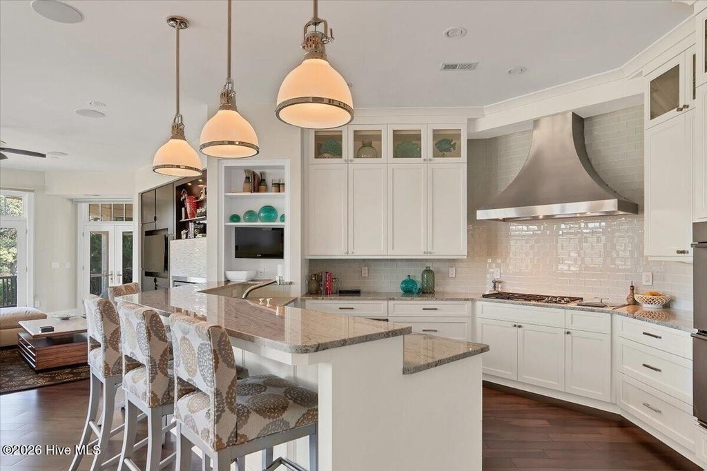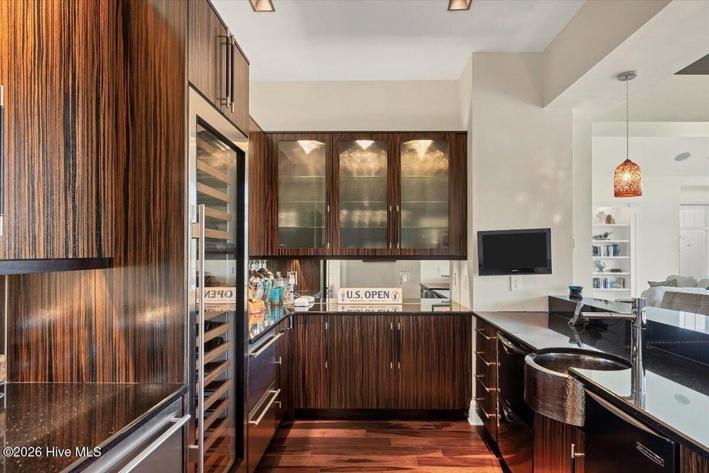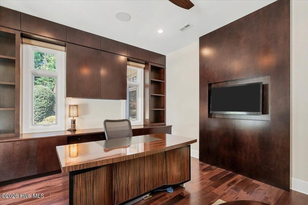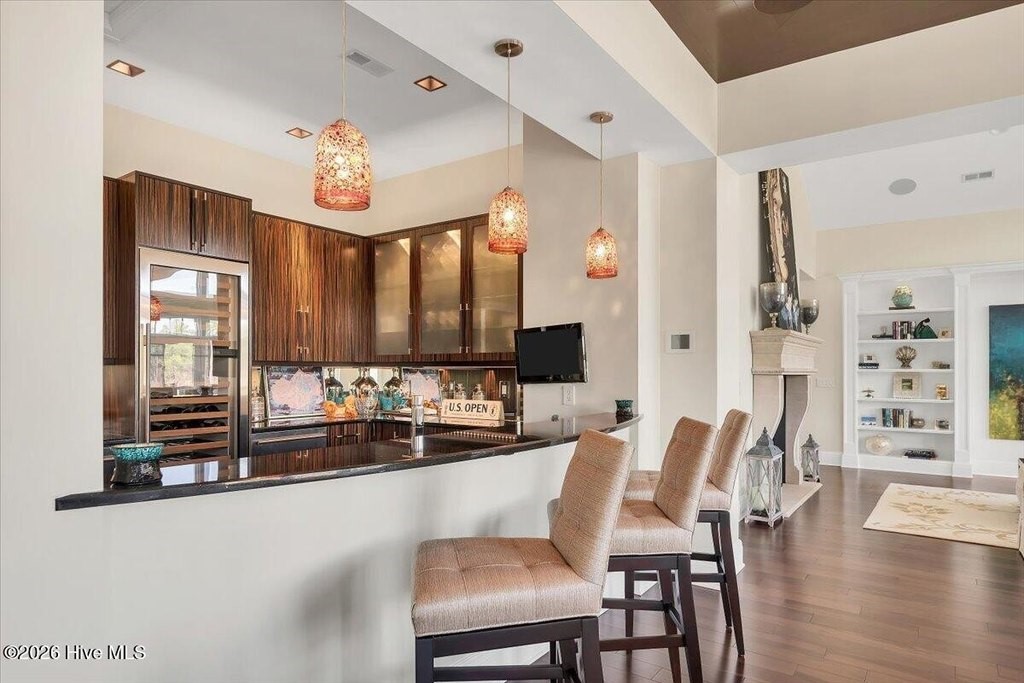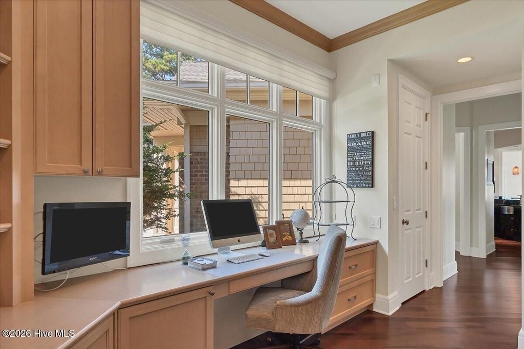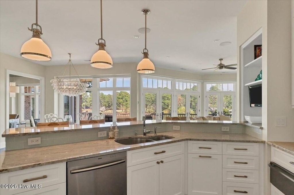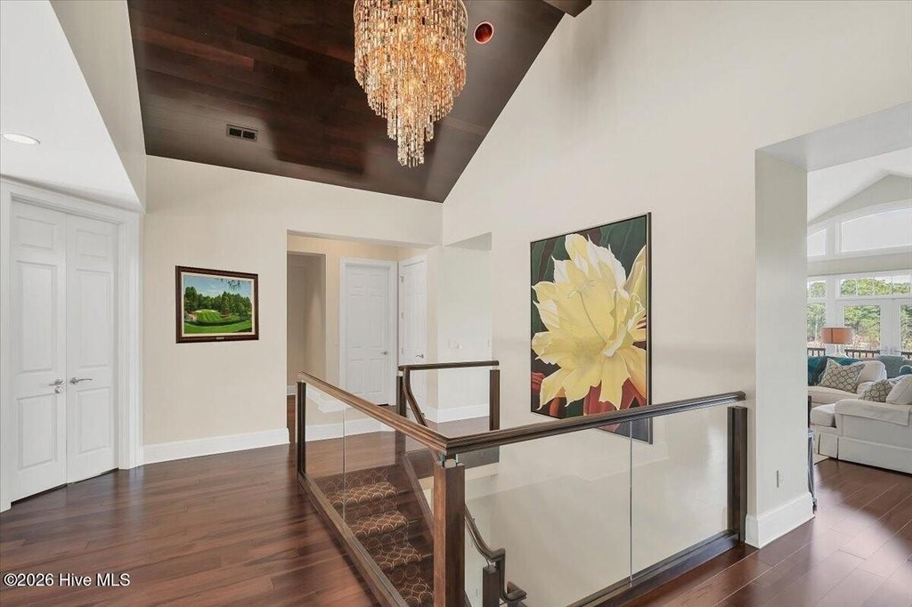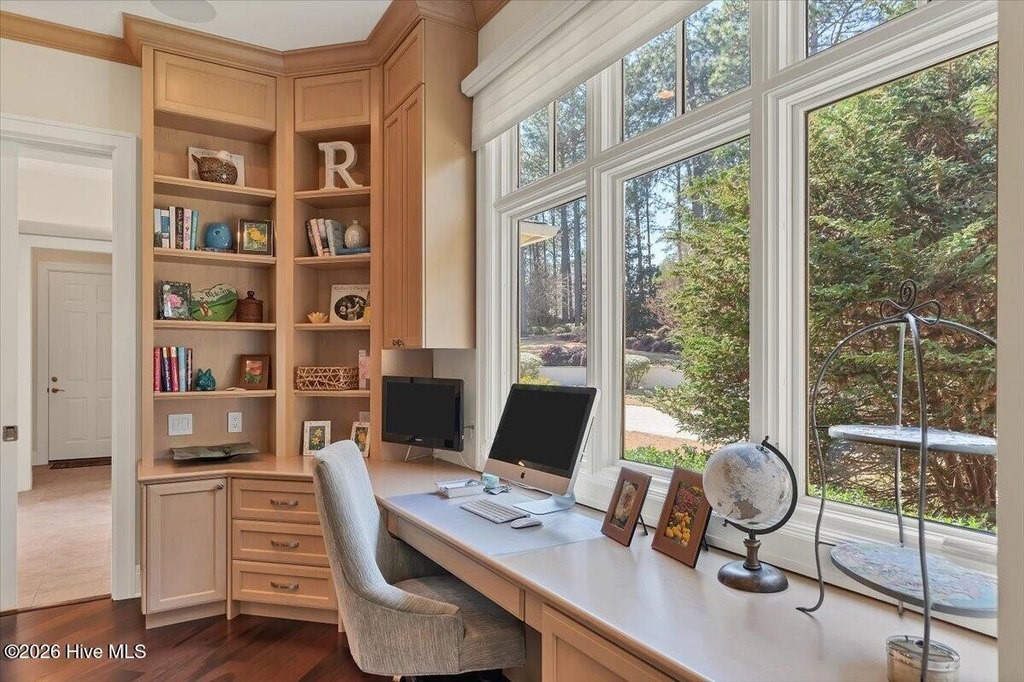 Walls of glass and soaring architectural ceilings frame unobstructed views of Lake Dornoch and CCNC's Dogwood Course, creating a light-filled, private retreat where water and fairway meet in a setting that is simply unmatched. Flawless in its execution and entirely one of a kind, this estate offers a rare lifestyle opportunity defined by craftsmanship, privacy, and prestige within the gates of The Country Club of North Carolina. Located just minutes from the Village of Pinehurst, known as the Home of American Golf, this sprawling residence, set on approximately 3.3 picturesque acres, offers something exceptionally rare: dual frontage on both Lake Dornoch and the 11th hole of the celebrated Dogwood Course. A winding, wooded drive lined with towering pines, azaleas, and dogwoods, creates a sense of arrival that feels both private and grand. The expansive backyard unfolds into sweeping views of the water and manicured fairways, creating a living panorama that shifts beautifully with every season. From nearly every room, the scenery reinforces that this is not simply a home, but a true sanctuary. Interior spaces were professionally designed by Brown Design Group of Boca Raton, resulting in a cohesive, elevated aesthetic where every detail has been thoughtfully curated. Custom cabinetry, architectural elements, and refined finishes carry throughout, ensuring the home feels entirely bespoke and intentional. Designed for both grand entertaining and effortless everyday living, the main level is anchored by a dramatic vaulted great room with fireplace & expansive windows that capture panoramic lake and golf course views. The kitchen serves as the heart of the home, featuring premium appliances and extensive custom cabinetry, seamlessly connecting to both casual and formal dining spaces. A light filled family room, complete with a gas fireplace and custom built-ins, flanks the kitchen and creates a warm, inviting gathering space. A dedicated bar and club room add warmth and sophistication, while dual offices provide flexibility for modern living. The primary suite offers a true retreat, complete with generous walk-in closets, a spa like bath, a private television room built with QuietRock soundproofing, and its own balcony overlooking the lake and fairway. A custom elevator, main level laundry, and multiple outdoor living spaces including a screened porch, wraparound deck, and private balcony, enhance both comfort and convenience. A three car garage complete with storage room and HVAC controlled half bath completes the indoor outdoor living experience. The lower level functions as a private extension of the home, ideal for hosting and recreation. A spacious living area opens directly to the backyard and lakefront, complemented by a media room, secondary kitchen, and temperature controlled wine cellar. Three additional ensuite bedrooms, a craft/hobby room, lower level laundry, and extensive built-ins provide comfort and functionality for families, guests, and extended stays. One guest suite has been thoughtfully designed with accessibility in mind, featuring close proximity to the elevator, wider entryways, and a generously sized walk-in shower with an expanded glass opening. Outdoors, the property is equally compelling, featuring a natural flagstone patio, gas fire pit, and beautifully landscaped grounds enhanced by newly installed landscape lighting (2025), illuminating the entire property well after sunset. A new roof (2024) provides peace of mind, while the home's impeccable condition reflects the care of discerning ownership throughout. Just a short walk from the club's pool, driving range, & tennis courts, this home is perfectly positioned to enjoy the very best of Pinehurst living. The Dogwood Course, one of two championship courses at CCNC, is consistently ranked among NC's top golf courses, maintaining a top five position in the North Carolina Golf Panel's 2025 ranking. Welcome home. *CCNC membership req